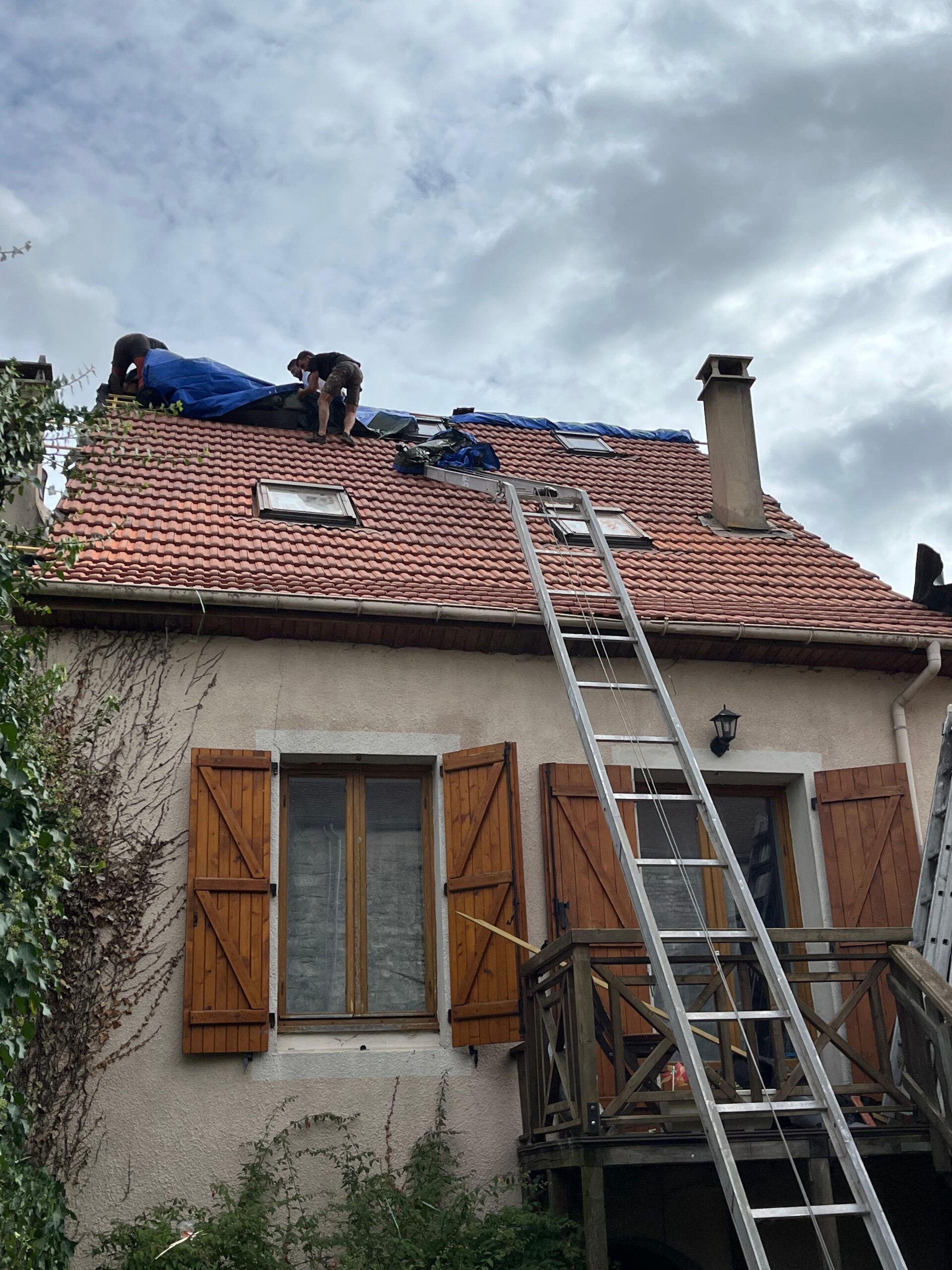 En cas de tempête ou de sinistre, nous intervenons en urgence pour bâcher votre toiture. Cette solution provisoire protège immédiatement votre maison des infiltrations en attendant une réparation définitive.